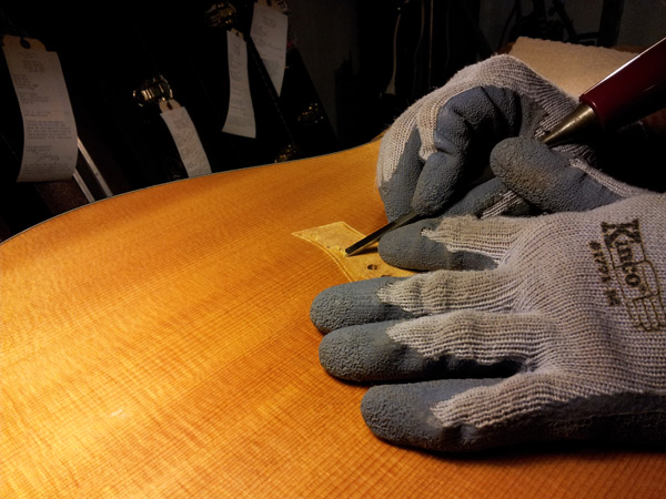 This is a view of shaving off the very thin layer of finish and glue to achieve a good wood to wood bond  when regluing.