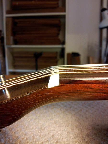This picture was taken after cleaning out  the old hide glue from a vintage martin. Notice how the center of the  nut shelf is "gappy" and only the ends make contact.